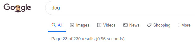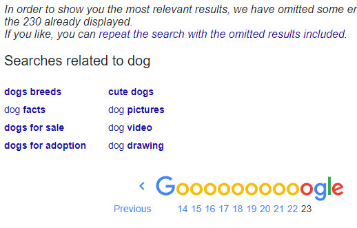 I'm being shown 0.0000030383091149273452% of the internet's results on dogs. It's like Google has decided the remaining 99.999999+% of the web is dark. "Nothing to see here folks, move along."