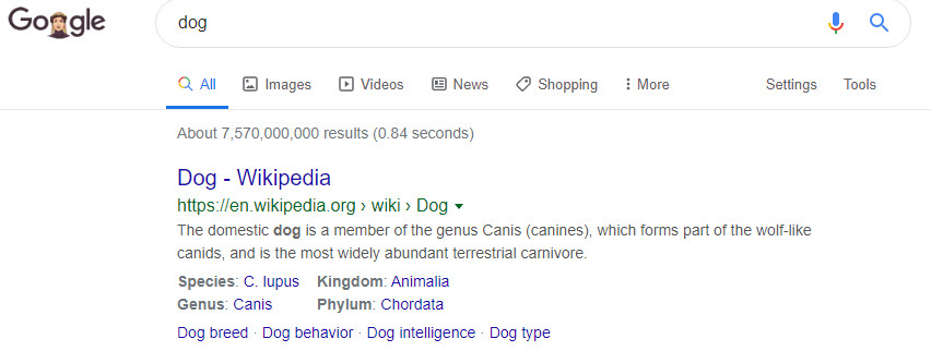 WONDERFUL! Over 7 and a half BILLION results! Boy oh boy I'm gonna learn some fun things about dogs.
