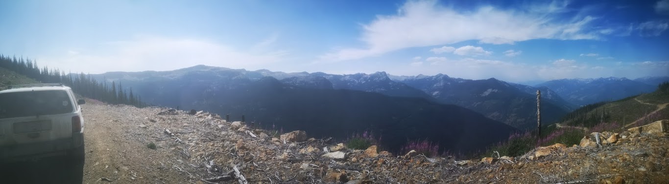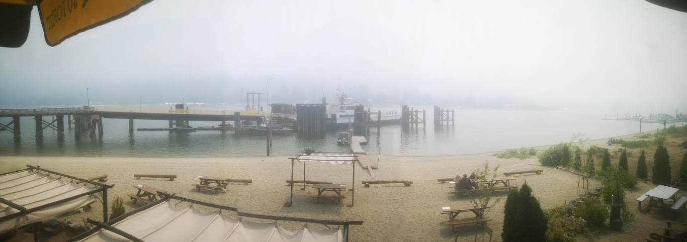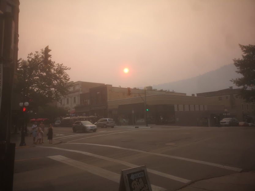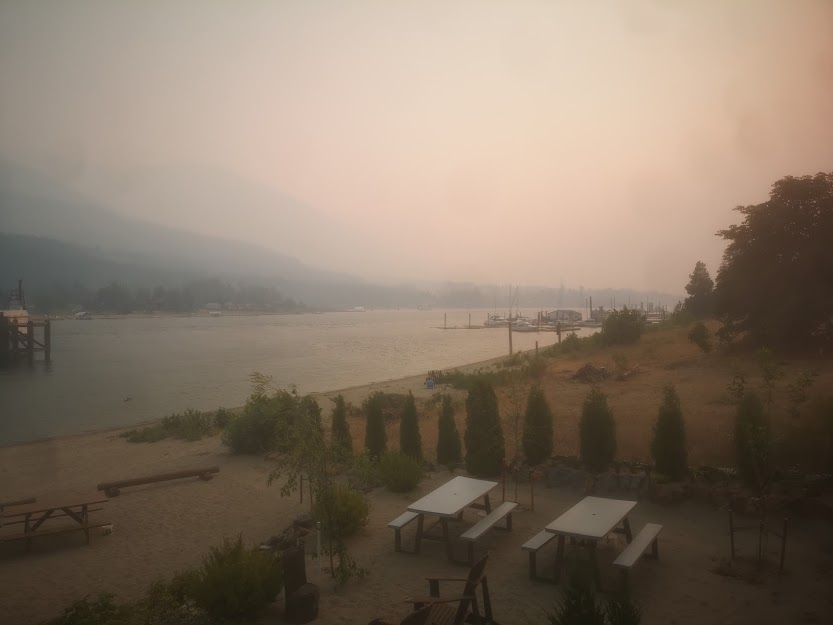 Tuesday, Smoky, attempts to avoid the smoke, find clean air by a quick trip to Creston over the Kootenay Pass - Clearer, for sure, but - still the smoke.