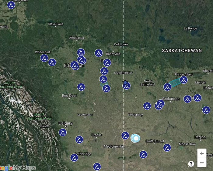 Inspired somewhat by "Meteorite Men" I make a map of the known meteorite falls in Alberta and Saskatchewan.