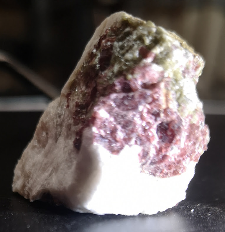 Gemmy garnet (?) with green crystal growth. Sorry for the photo quality, phone doesn't zoom so good.