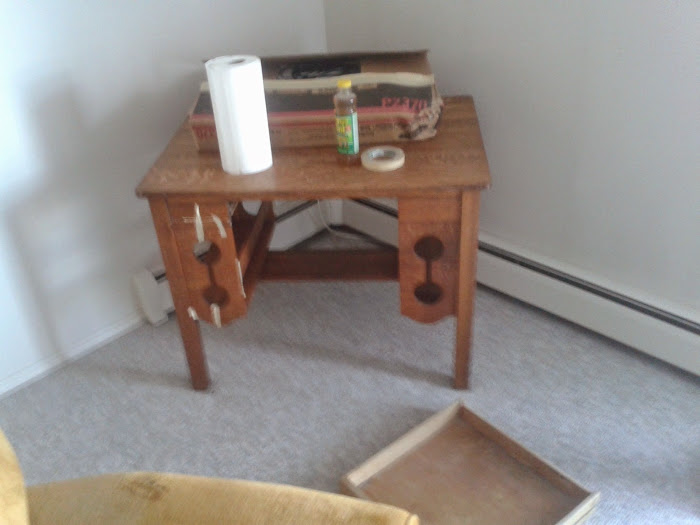 And, upon loading it up and getting it into the place, a drive around the block turns up a perfectly fixable antique oak desk: