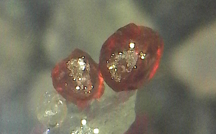 The acid test, over time, well, they all dissolved, and while I'd set up my camera to do some time lapse photography it wasn't in a convenient location, the light sources varied, overall not a success. But I've learned, mebbe, and next time it'll be better. Meanwhile, a few photos of the vanishing implausible shapes and impossible lustres ...