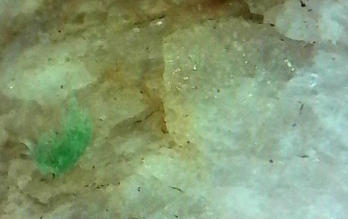 And this, smaller by far even than the garnets, but a chromite or tiny mineralization in the Quartz, beautiful color, could there be emeralds nearby? Mind you, they'd have to be a hell of a lot larger than this...