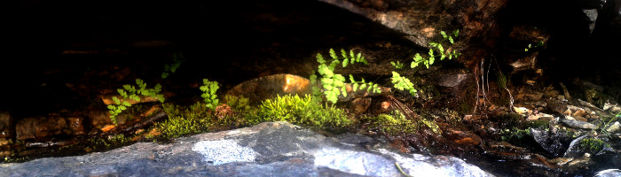 Some pretty ferns opening beneath some rocks...