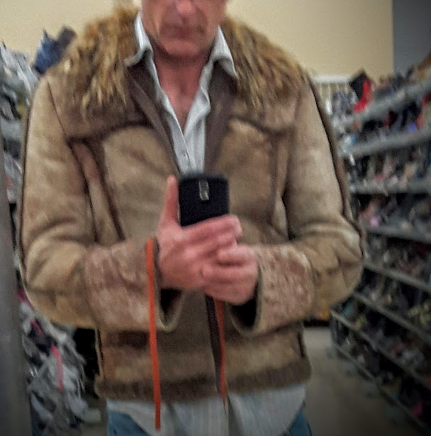 Like this jacket, too small, but I'd rock any rave with this. Real fur collar, vintage, "Shabby Shaman Chic".