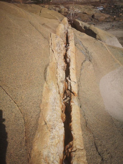 A bit of panning, next to no gold, Chris finds a few flakes - tiny, not worth the effort, and after a bit of crevassing I give up and go and canvas the landscape. This bedrock is pretty cool: