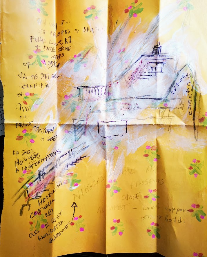 He likes the reverse writing, him and Leonardo Da Vinci...