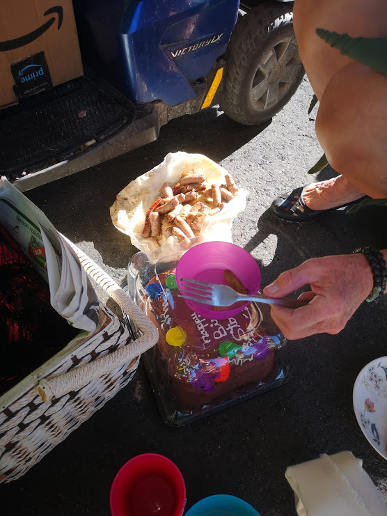 Yep. 77, give or take: I have to work, early, but I meet him at home and then arrange to carry some of his props to the Orange Bridge, we'll set up in it's shadow and celebrate in style: