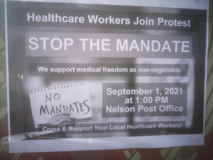 And what a fuss! Easily Five hundred people, all waving banners, placards, cars honking their support, the 4 corners and boulevards at Vernon and Ward are full, full full. Placards saying "No Mandatory Vaccine" and "Medical Freedom for all" and ten thousand other nonsensical slogans that make no sense whatsoever from a broader prospective. To put it in perspective - last week (the last week for which numbers were reported) over 150 people tested positive for COVID in Nelson.