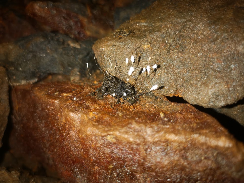 Meanwhile, a couple of photos inside a mine, fungi growing off of guano: