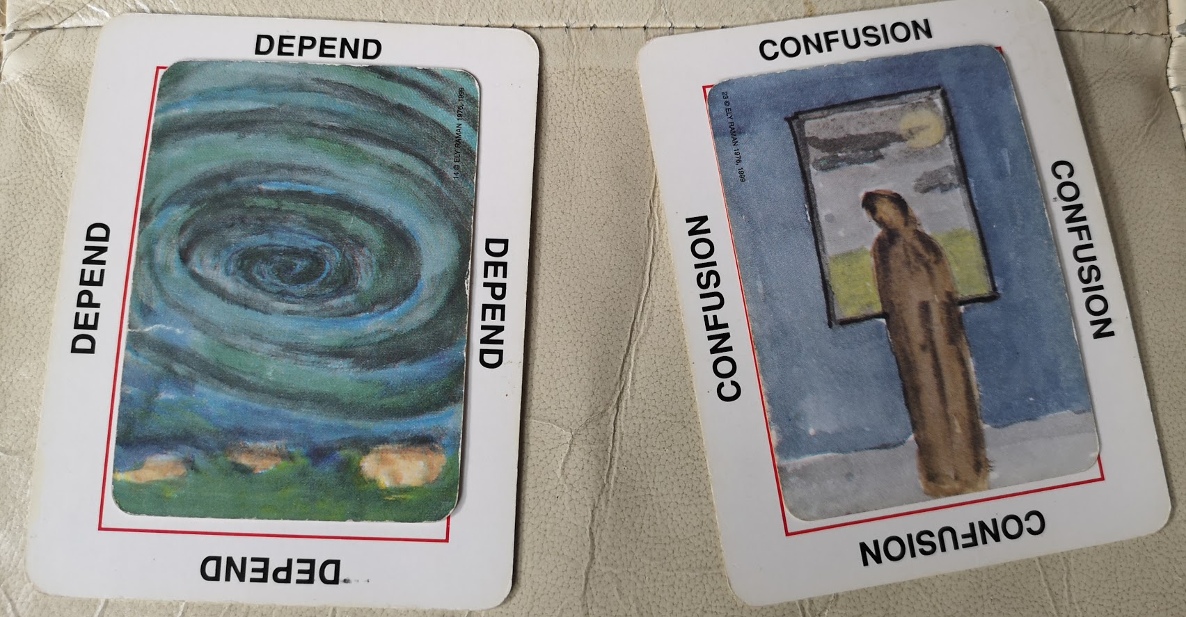 I said she lives with her husband, but not so much, there's a couple of outbuildings she's had built and furnished, retreats, temples where she sleeps, reads, meditates, does her own thing, and we abandon the house for one of her sheds, chat, she explains the reading she's going to do, odd decks I'm not so familiar with, my own preference is for the Rider-Waite or Crowley Deck of Thoth, but she has other plans, this is a "Card" reading, not a "Tarot" reading, and she gets out a couple of decks I'm unfamiliar with and bids me to shuffle them, cut them, restack and pick a card. These are the "OH Cards" by Ely Raman, I have no idea of what they're about. Meanwhile I'm to be thinking of my question, out loud or to myself, while she chatters on. She's offered me a joint - "The Cadillac of Pot" she calls it, but I don't smoke and have a big list of things to get done, she - well, less so.