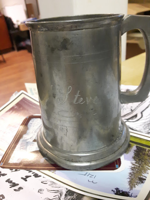 ...returning to the dungeon, time to get ready for work, there's another cache left for me, a pewter cup, "Steve" badly engraved on the side, filled with notes and drawings, reading it, there's the hit-list of people who've mistreated him on the Ferry Landing, invective damning Lang's, The Fishing shop, the Bakery, I return outside to thank him...