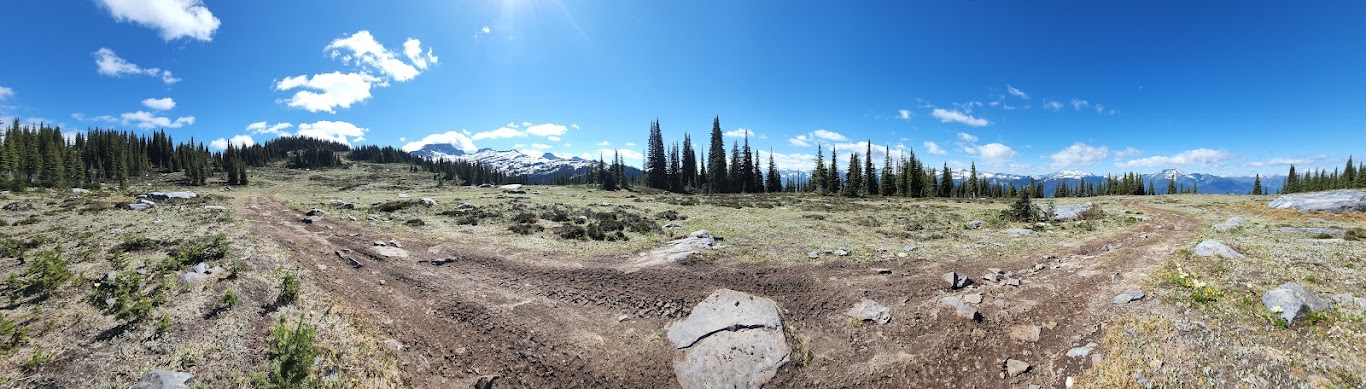 And riding along the summit I come to snow. A little late in the season for this, a 3 foot patch, someone has been through with an ATV, why not, give it a run...