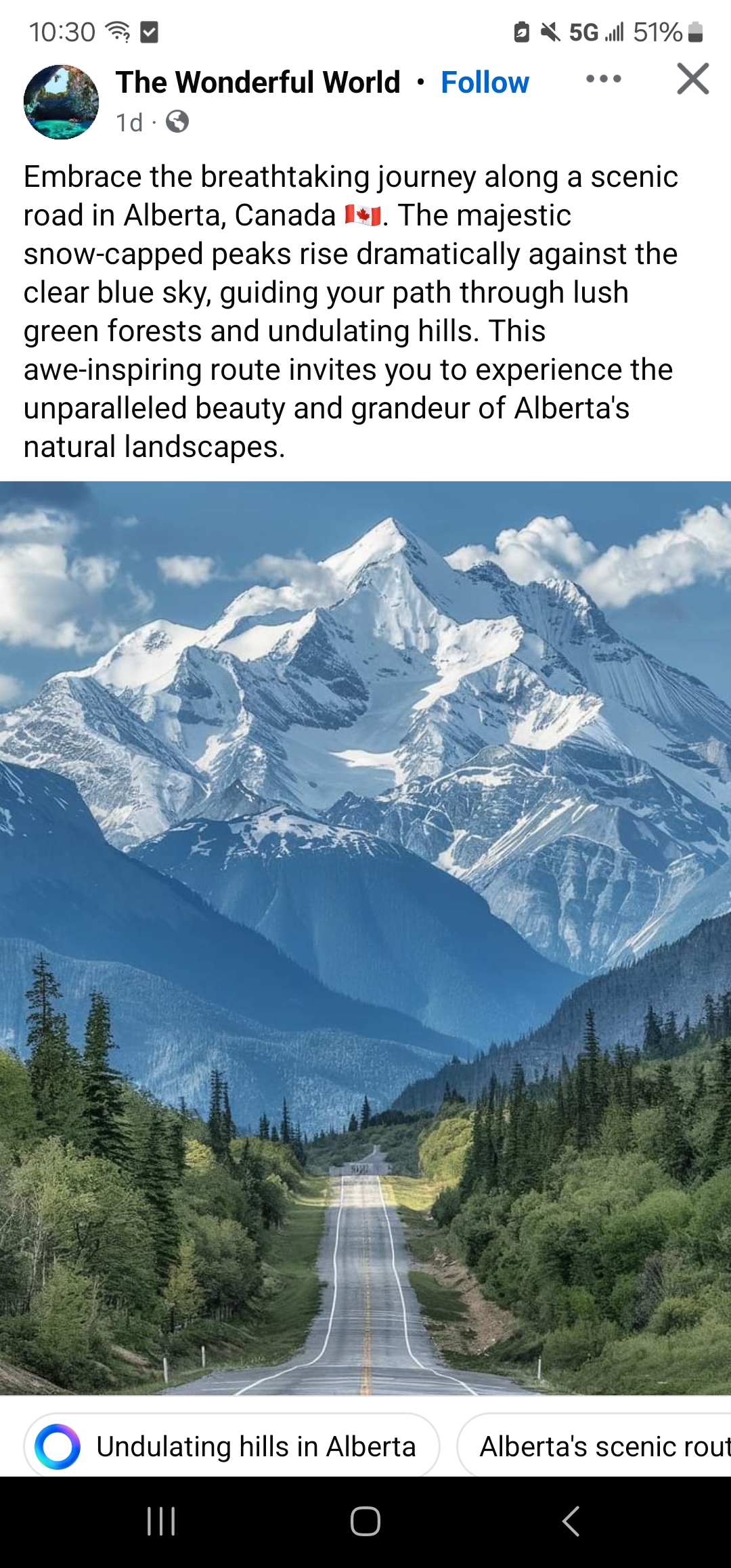 This on my Facebook feed, an AI generated image (or at least I think it is, I've driven most of the roads there and don't recall seeing this...)