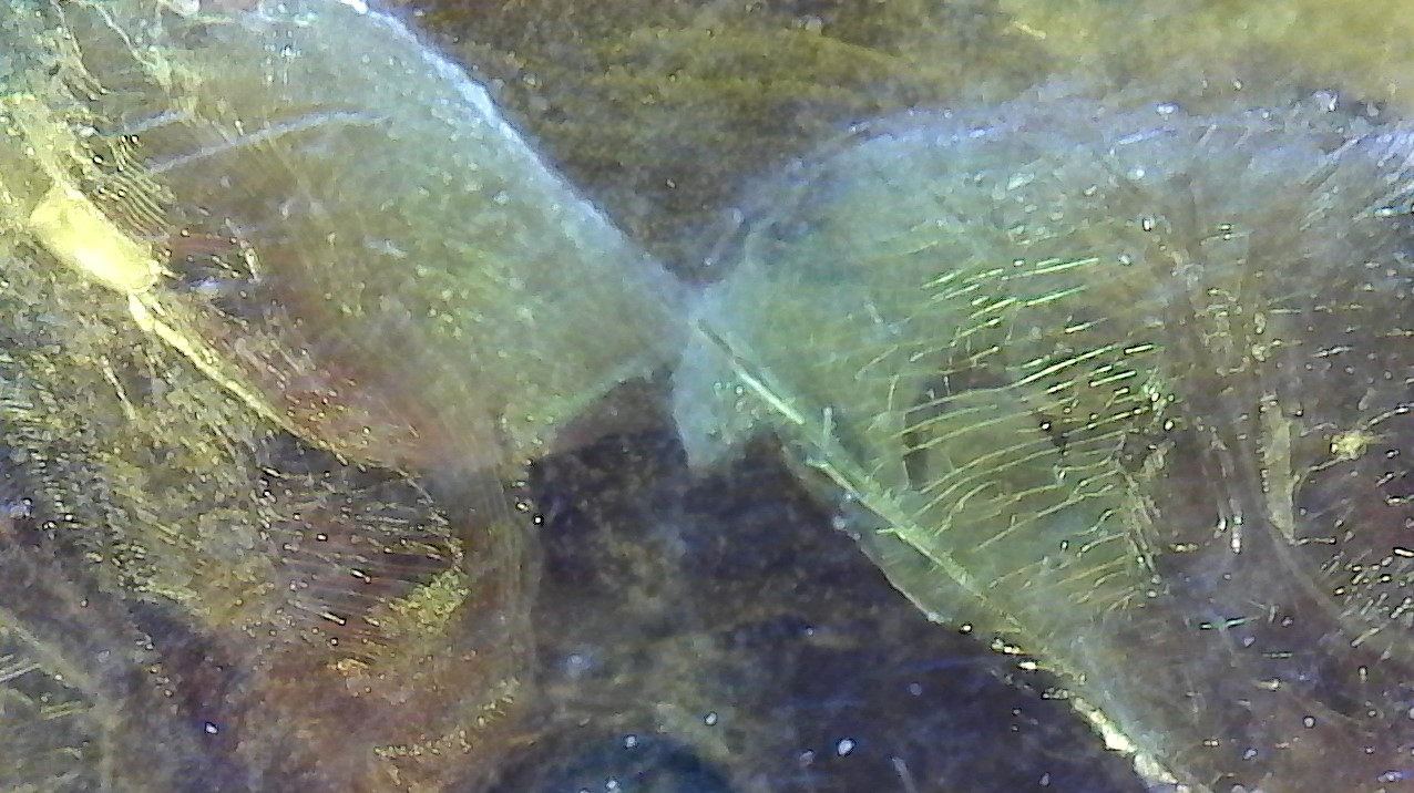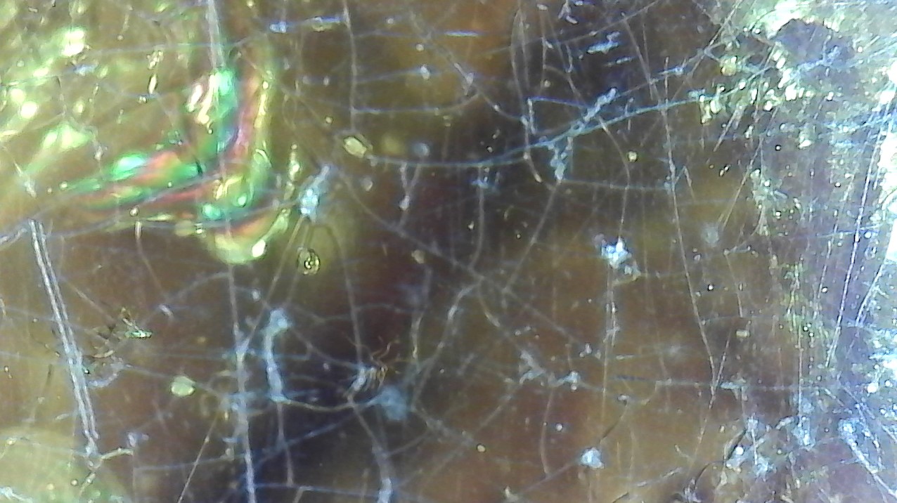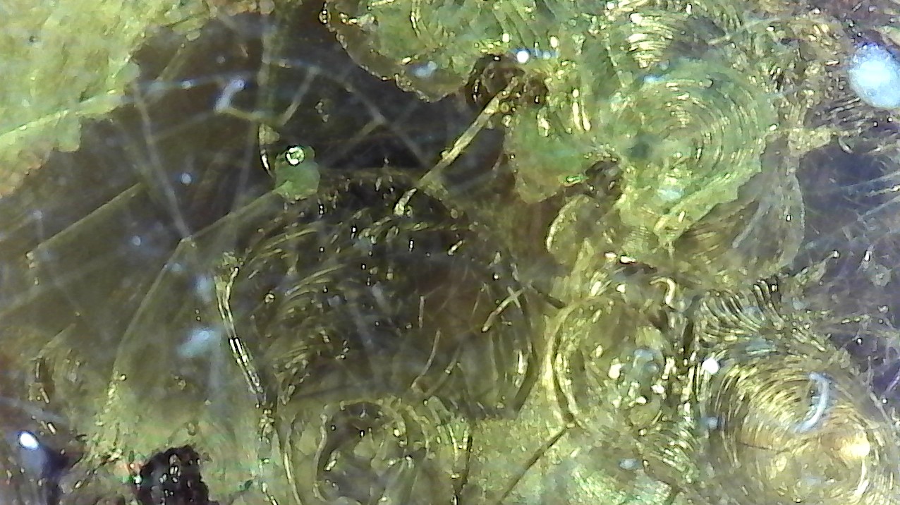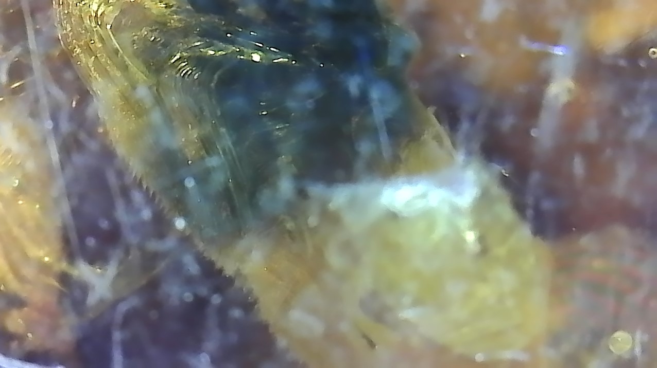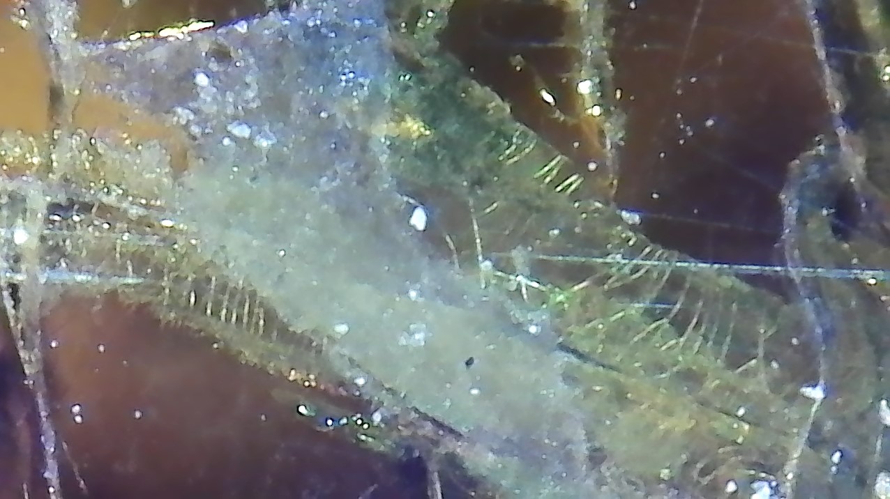 OK, OK, I'll leave it alone after this. An old piece of Baltic Amber I had with some flies as inclusions, thought it would be interesting under the microscope. It was. You can see the flies, wings, other inclusions - possible a spider, and what appear to be bits of feather.