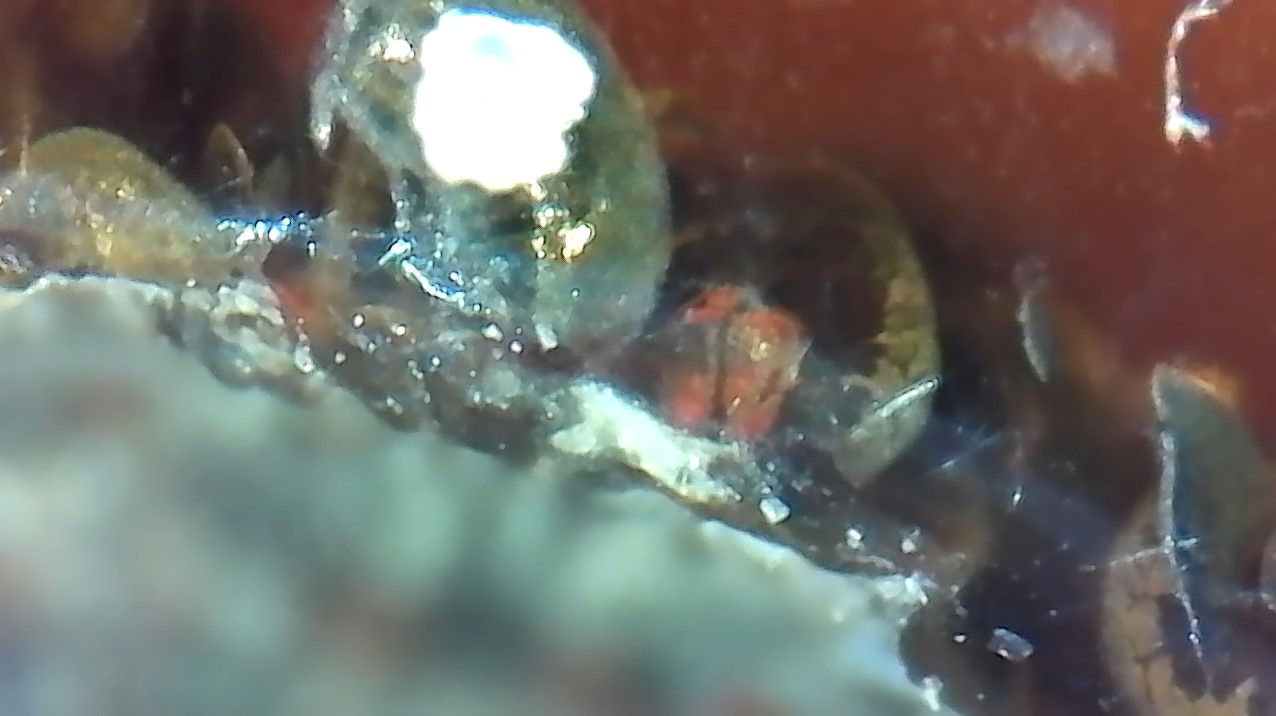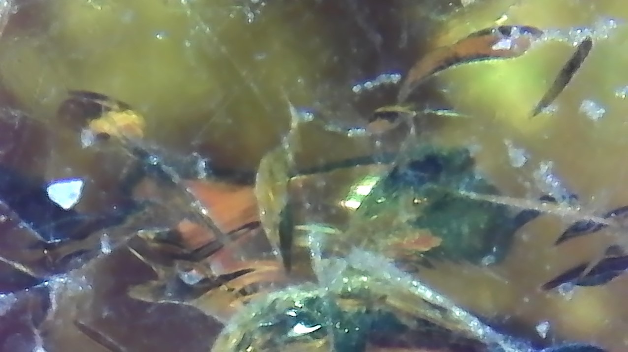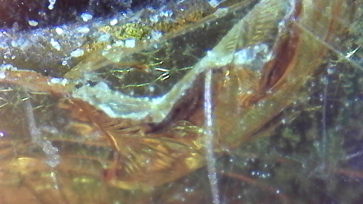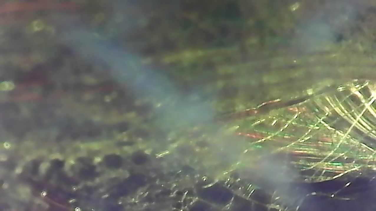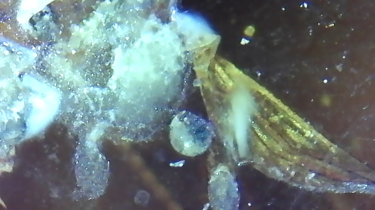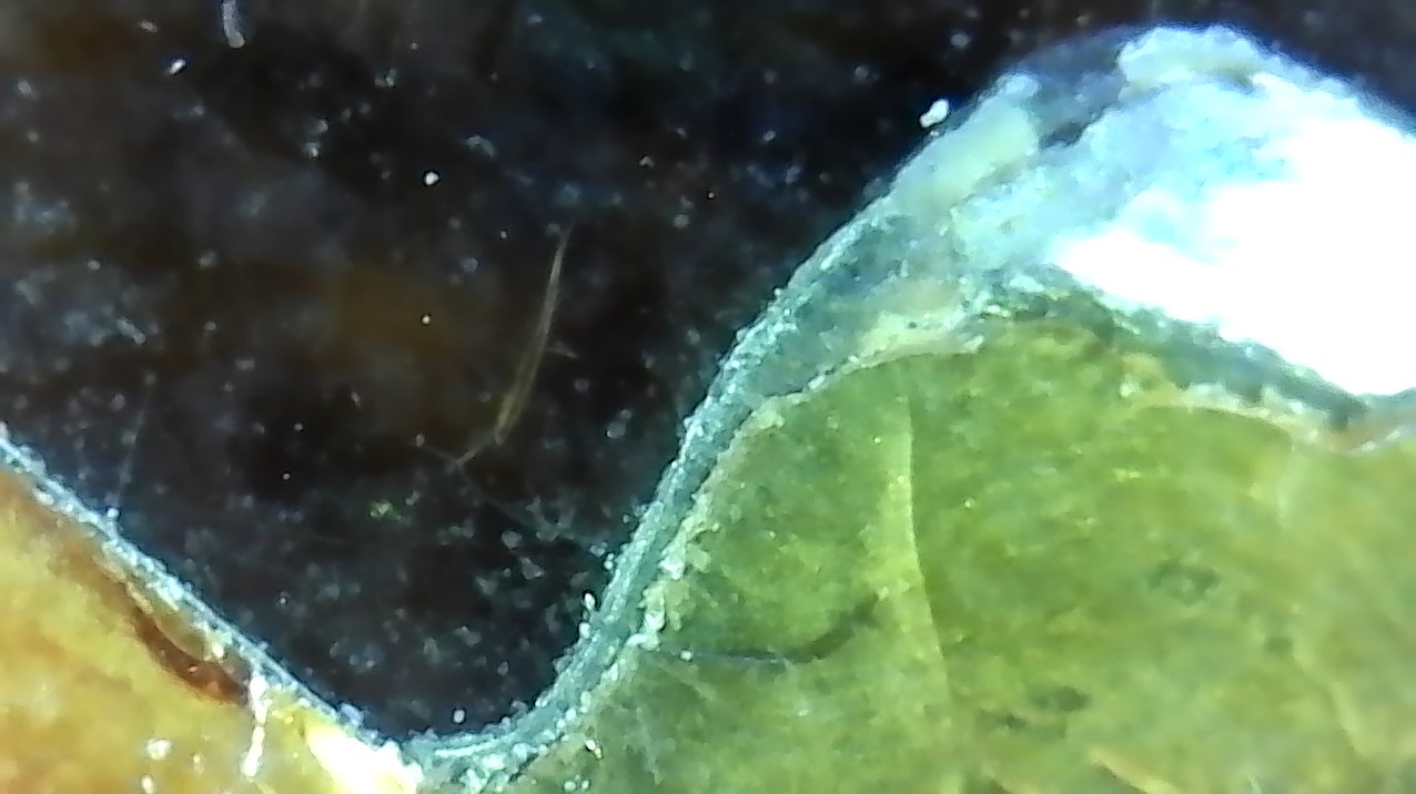 OK, OK, I'll leave it alone after this. An old piece of Baltic Amber I had with some flies as inclusions, thought it would be interesting under the microscope. It was. You can see the flies, wings, other inclusions - possible a spider, and what appear to be bits of feather.