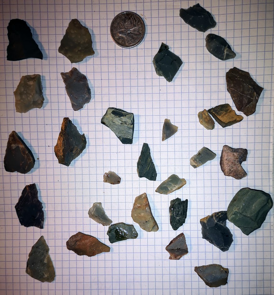 Nights in the hammocks, afternoons spent combing the beach looking for arrowheads. The ones on the top left are the most shaped - flaked on both sides, and the little "divots" in the rock are pressure points pressed to release the flakes. Most of the smaller pieces are just flakes, pieces knapped off of larger tools.