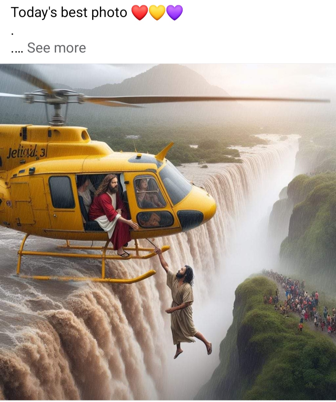 Jesus in the helicopter of pain saving Jesus from the waterfall...