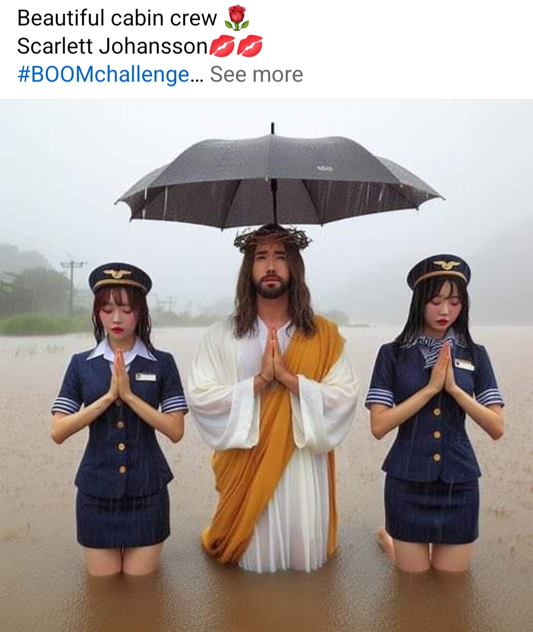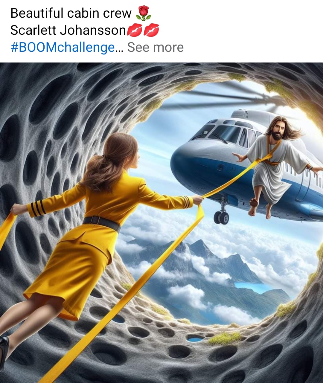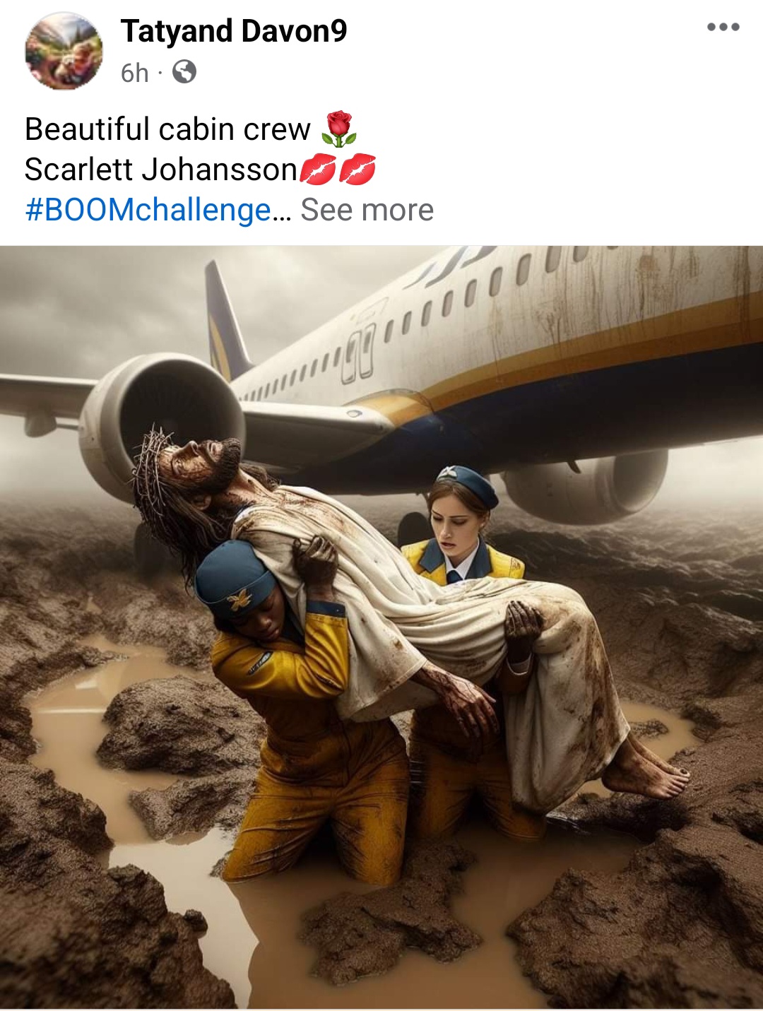 Jesus not letting the cabin crew onto the plane. This - the mud, plane, stewardess, Jesus, what in the fuck was the prompt, and WHY WHY WHY?