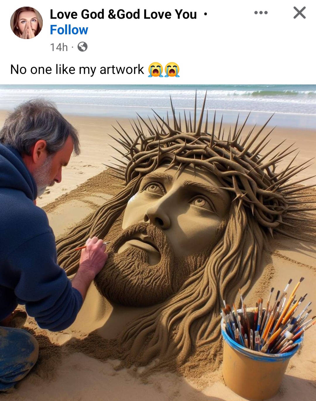 No, he didn't make that sand-sculpture. And "Artwork" is stretching it...