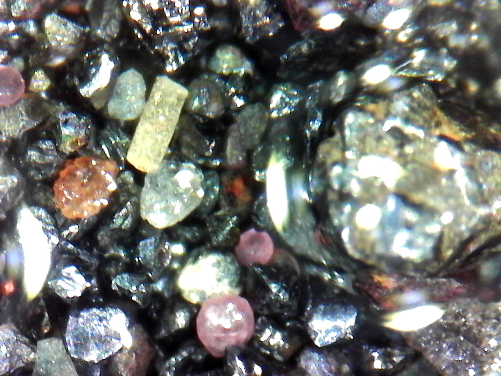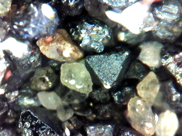 Cleaning up some old concentrates, precious little gold, thought I'd throw it all under the microscope and see what made up the black sand...
