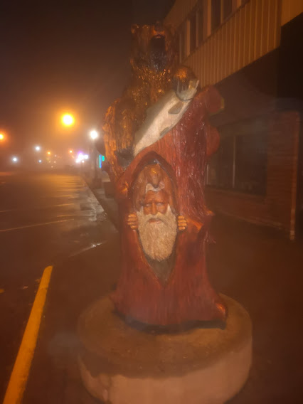 None of them any good - but they reflect the general atmosphere - low, hanging clouds, mossy cedars, chainsaw wood sculptures, the burned out/abandoned houses, the wifi at the church, the lifebuoy app advertised everywhere, the neon of the cinema...