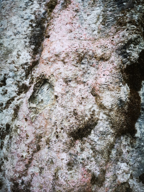 Pink, and sort of bulbous, in a tufa-sort of way. It proved to be a deep organic map of moss & vegetation. Cool, but not what I'm looking for...(you can see where I dug through it to the rock beneath, middle left)