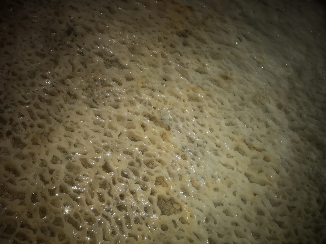 In the cave it reflects a brilliant white by the flashlight. The flash doesn't do it justice.