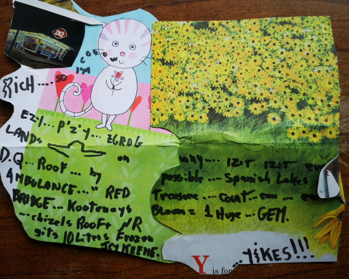 So, in reply, a bunch of better quality art paper sent back, a few less cereal boxes would make this trove of genius a lot easier to store...
