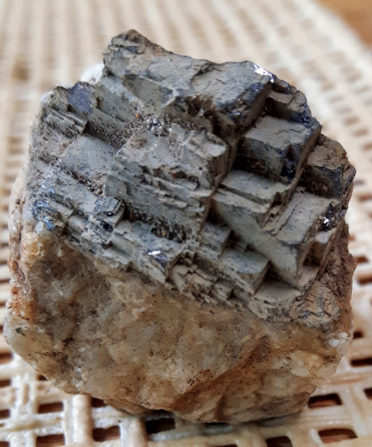 A fine specimen of cubic galena on quartz. Found while hunting crystals, lots more where these came from, now to find a way to turn into cash...
