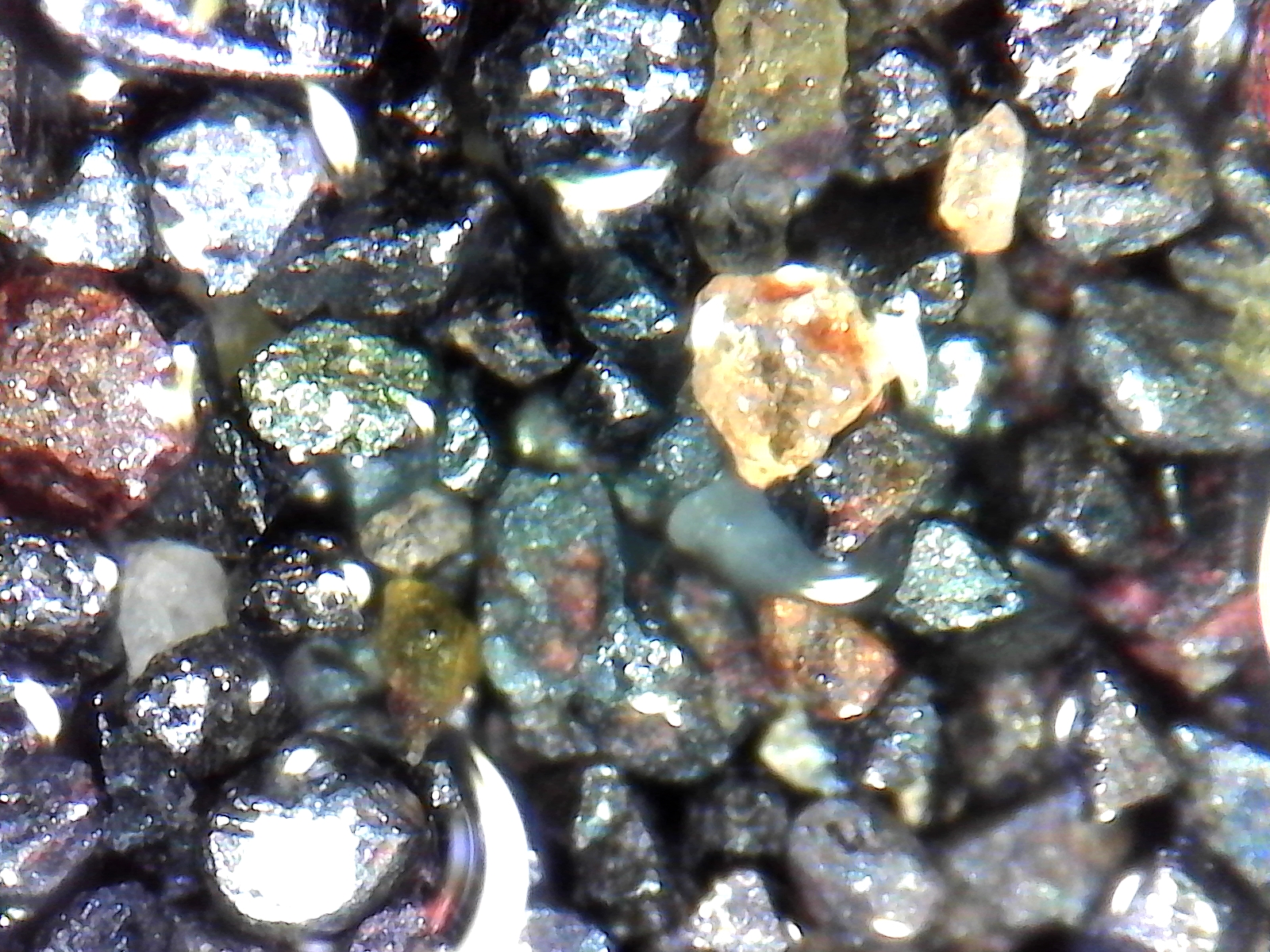 Cleaning up some old concentrates, precious little gold, thought I'd throw it all under the microscope and see what made up the black sand...