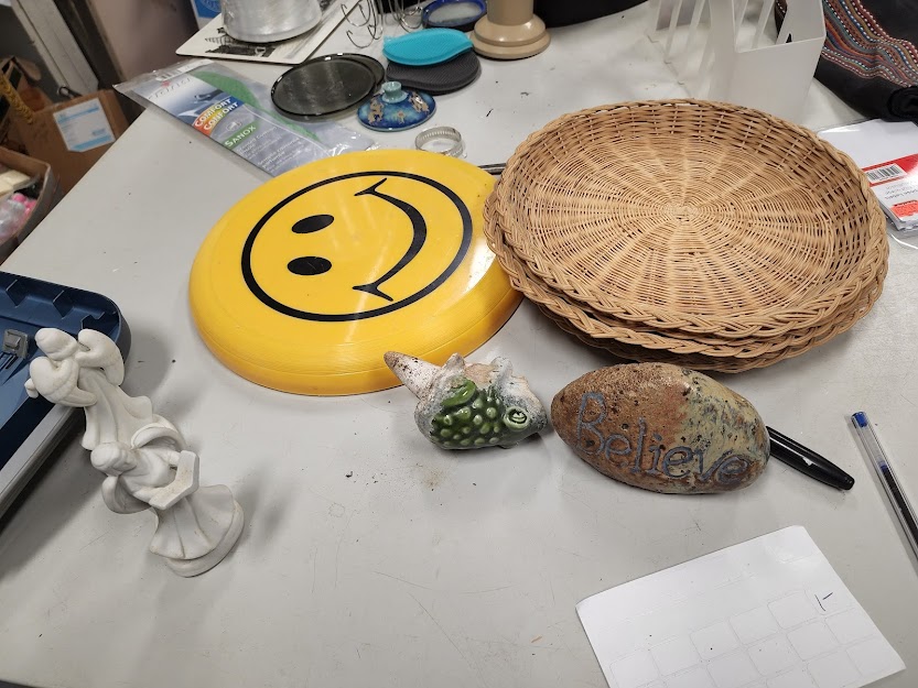 A "Live, Laugh, Love" picture frame, never used. They never are. 2/3rds of a "Salad Spinner". Other Tat.
