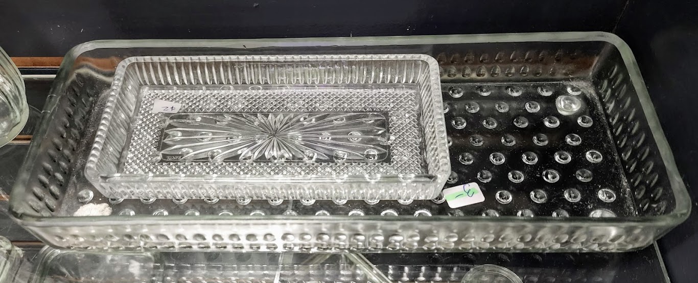 Little glass trays. I've suggested to the thrift shop that we should "Stage them" - meaning display them with rolling papers and a bit of sprinkled pot, or mirror them with the mirror paint (apply on the backside), then "Stage them" with a few lines of baking soda and a razor blade, straw.