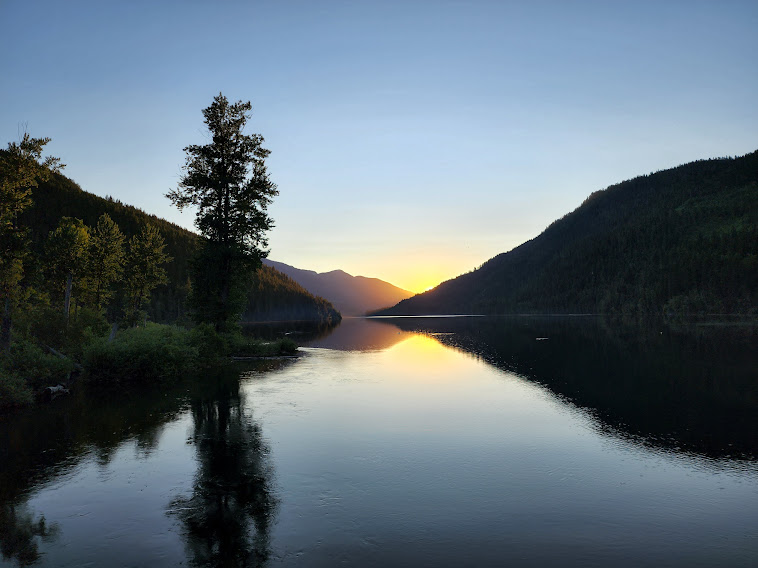 Racing to catch the sunset, unfortunately ended up on the east end of the lake, the scenery - trees blazing in the dying light - was from the west.