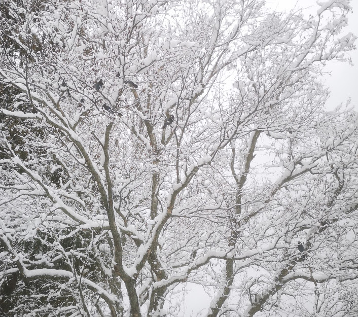 6 Inches of snow last night and 8 Bluejays waiting for breakfast...
