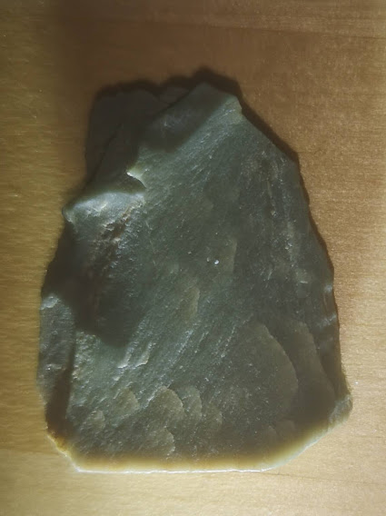 A short walk on the beach, looking for arrowheads or flakes. Nothing. Then, just leaving the beach and the daughter's calling and I spot this:
