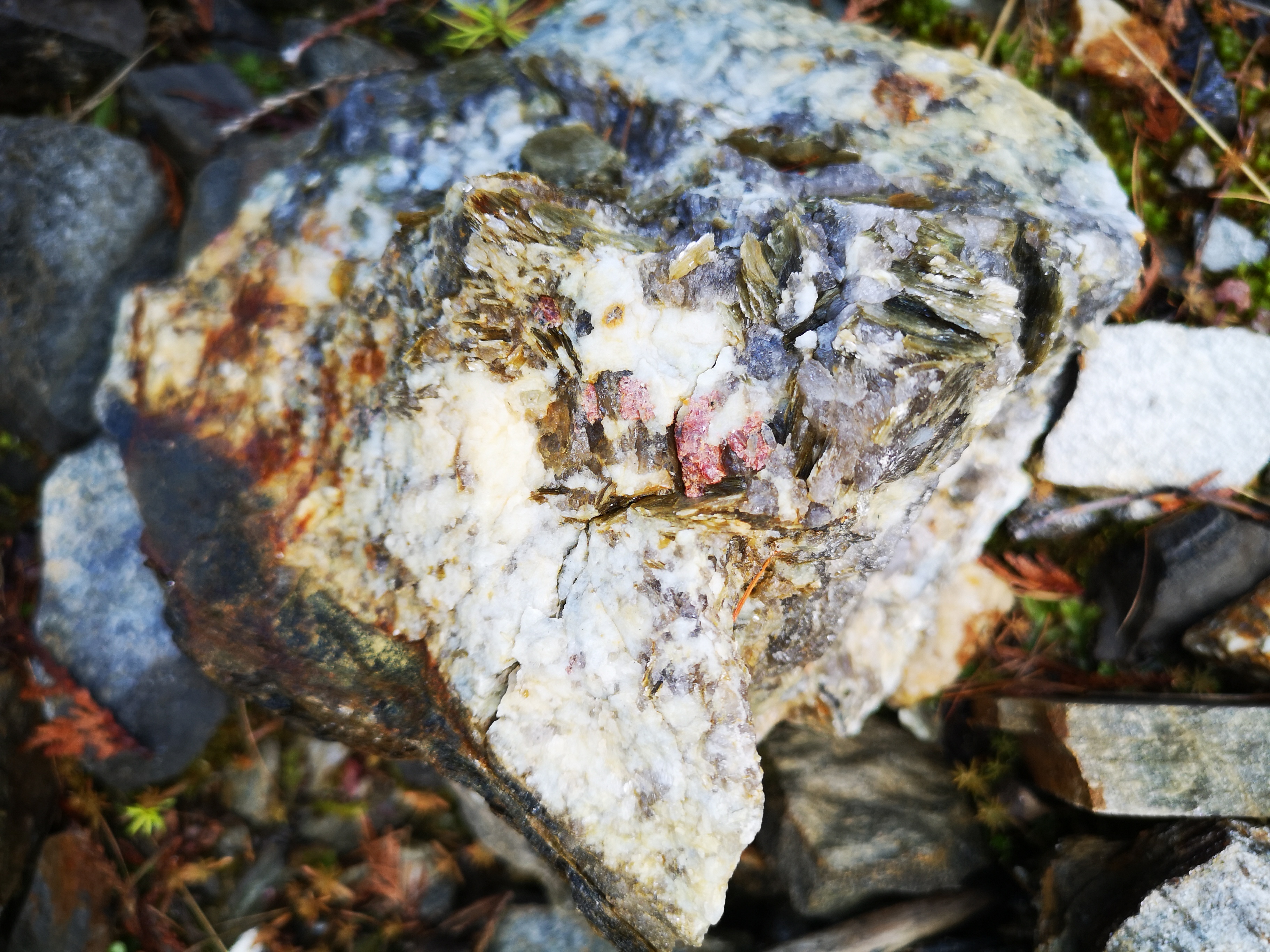 So far, a nightmare of Ticks, hordes of other as yet unidentified biting insects, and very few finds. A new pegmatite, no gems...anyways, let the pictures tell the tale: