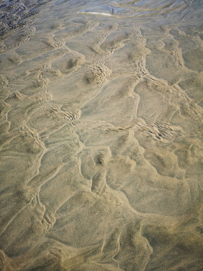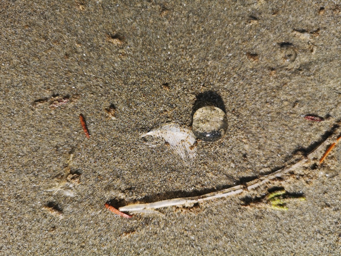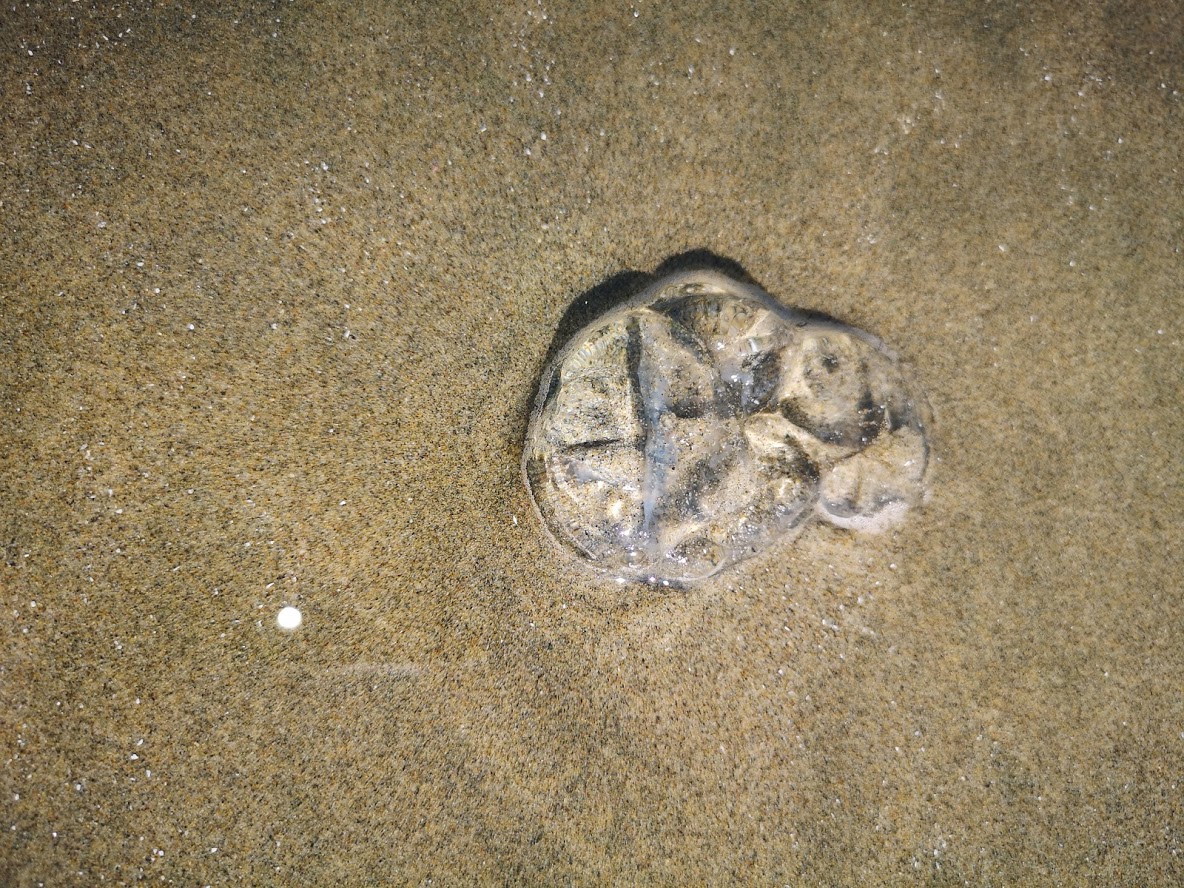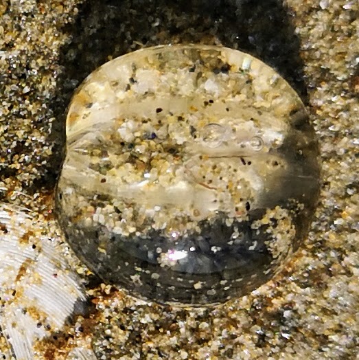 Tiny blobs of protoplasm, jellyfish, washed up on the beach...