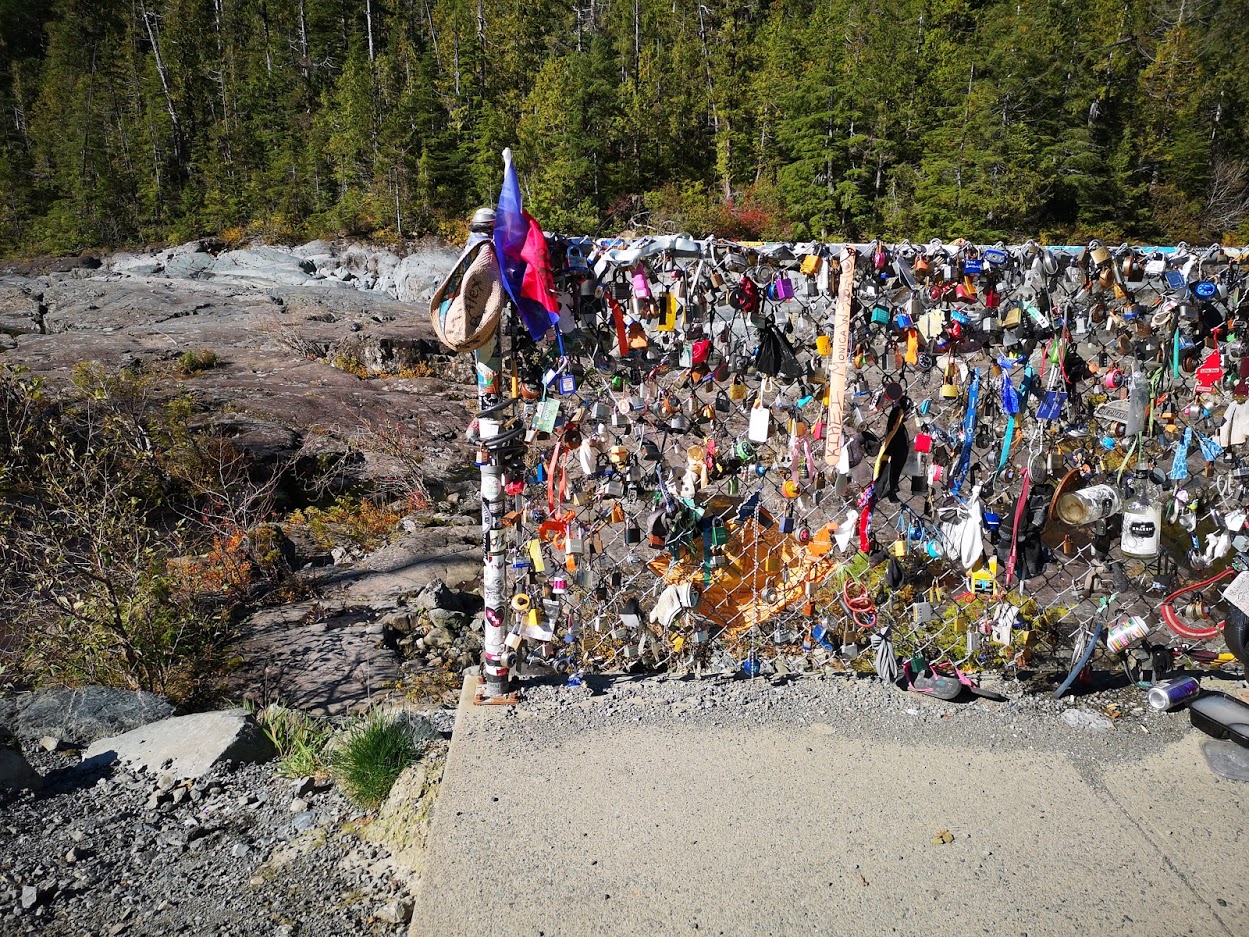 And all the other rubbish hanging from it, bags, bottles, notes, etc, like the Shoe Tree of the Tullameen it's a mystery...