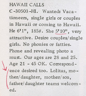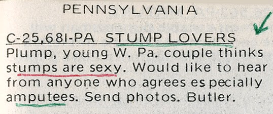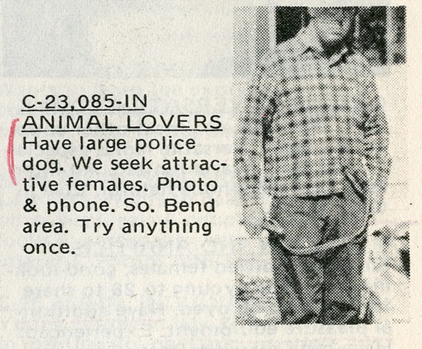 Then there was Mitch O'Connell's collection of Swinger Ads from print magazines, The Craigslist of yesteryear, only - if you can believe it, even more fucked up. No, really...