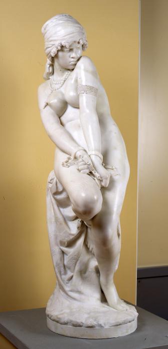 Above, sculpture by Giacomo Ginotti, abbreviated in English to "Slave". I love the detail, the way he's carved her both straining against her chains/cuffs and trying to shield her modesty, and yet...