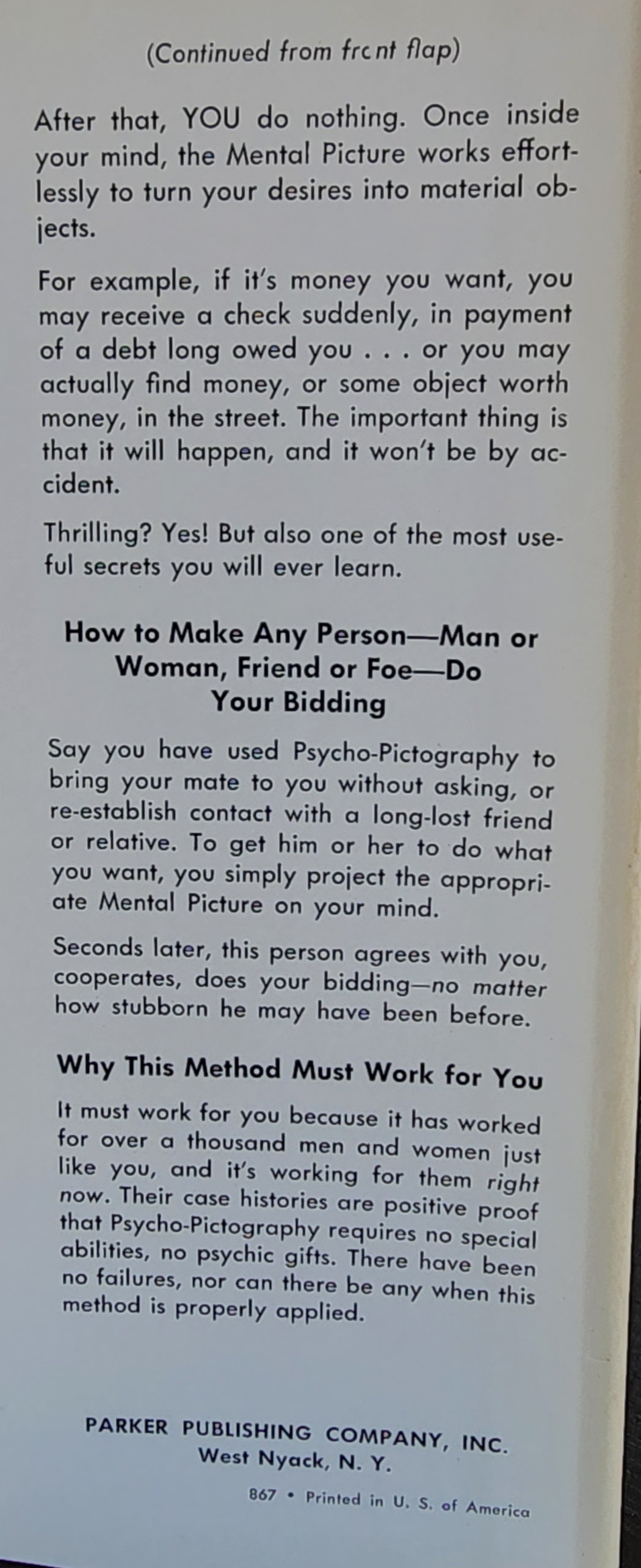 The entertaining part of this is the authors' "Mental Imagery", or provided "Psycho-Pictographs", stories that he tells, contemporary, that illuminate or illustrate his point.