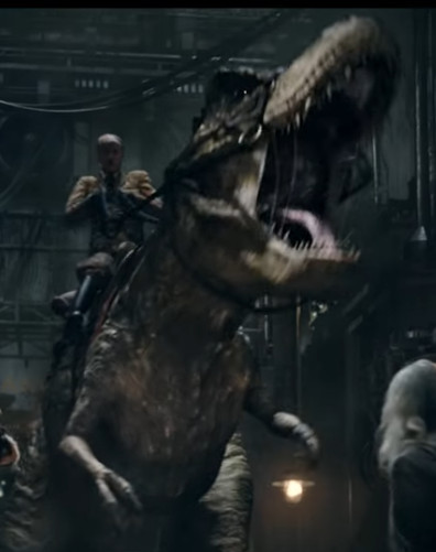 What's that? A T-Rex? And on it, could it be, I thought he died in the first movie....
