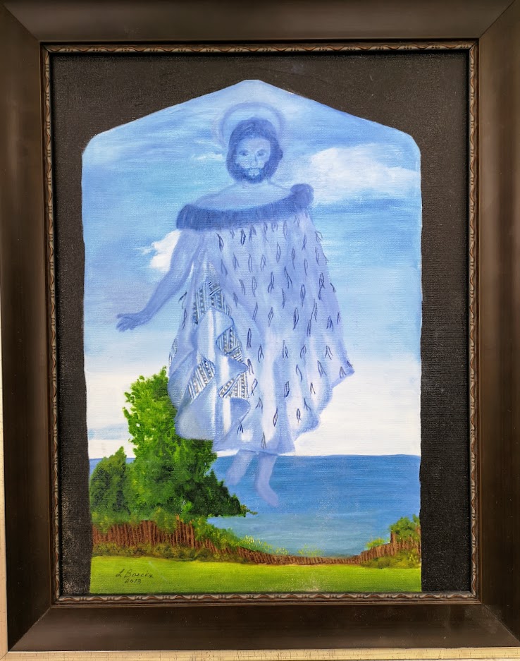 I think it's Jesus. Probably it's drawn very true to life, I wasn't there, but it could probably benefit from a bit of restoration...