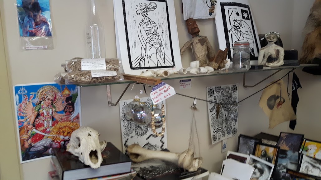 Everything from fossils, skulls, bones, antiquities, very little for sale (that's ok, very little of real value, but a curious room nonetheless...)