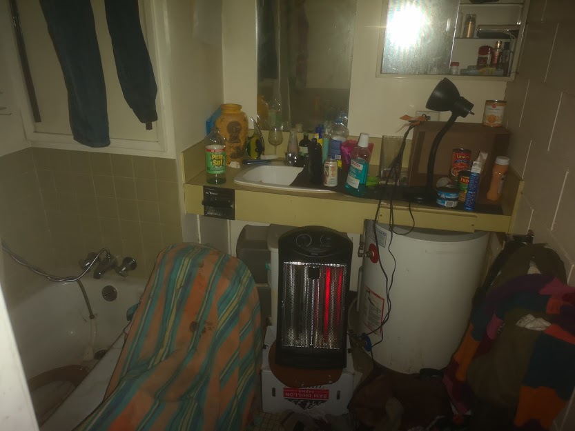 A space heater set up in his bathroom, no fire-hazard here...