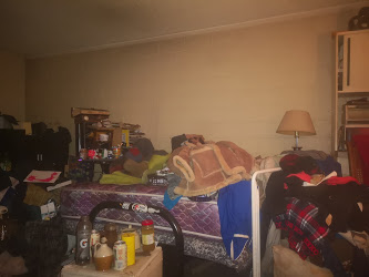His house, the same, packed chock-a-block with rubbish, if you look close that's him lying on his bed under the suede/sheepskin coat.