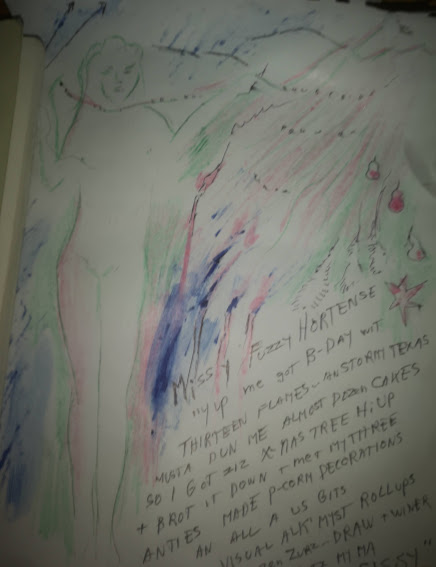 From here, lunch at the Yellow Deli, then to a couple of thrift shops, Stormy needs a newer pair of sweats, the old ones, well, they're just falling off of him, out to his apartment to grab my Xmas present, now to find tape so I can wrap it up, there's a big bag of scrolls - absent the gifts - marvelous, something to unbox, I won't be in town again anytime soon, and that's the day.
