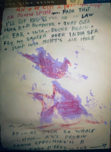 So, if you were wondering, he's fine. And this morning I unrolled his scrolls - well over 100, prodigal output for a couple of weeks, and - by the looks of some of them they're allowing him back into Cowan's to do his photocopying (they bar him every couple of days or so, I understand why, but STILL the man's the greatest living artist in the Kootenays, maybe even all of Canada, so cut him a little slack...).